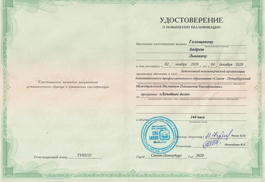 успешно прошел аттестацию и получил квалификационную категорию «Врач второй категории»;